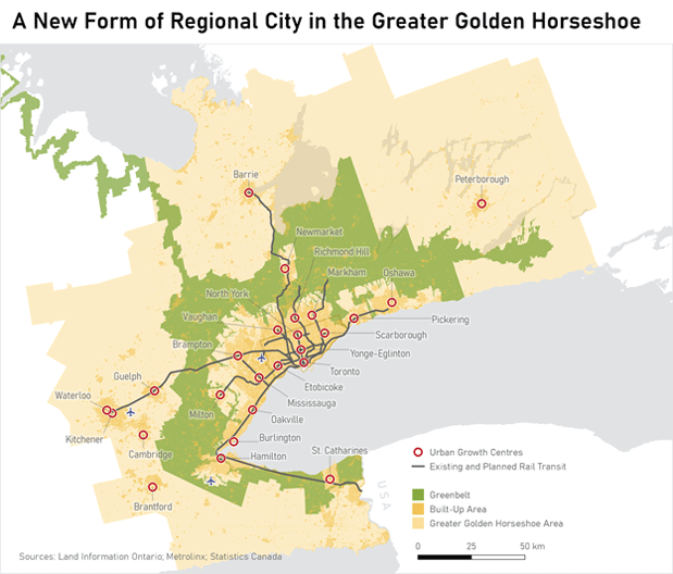 During a period of phenomenal growth in which Toronto has had more cranes in the sky than any other North American city, a new form of city region with multiple urban centers has started to emerge in the Greater Toronto Area (GTA). This new city region is propelled by powerful economic and social forces and spurred by the imperative of a more sustainable future.